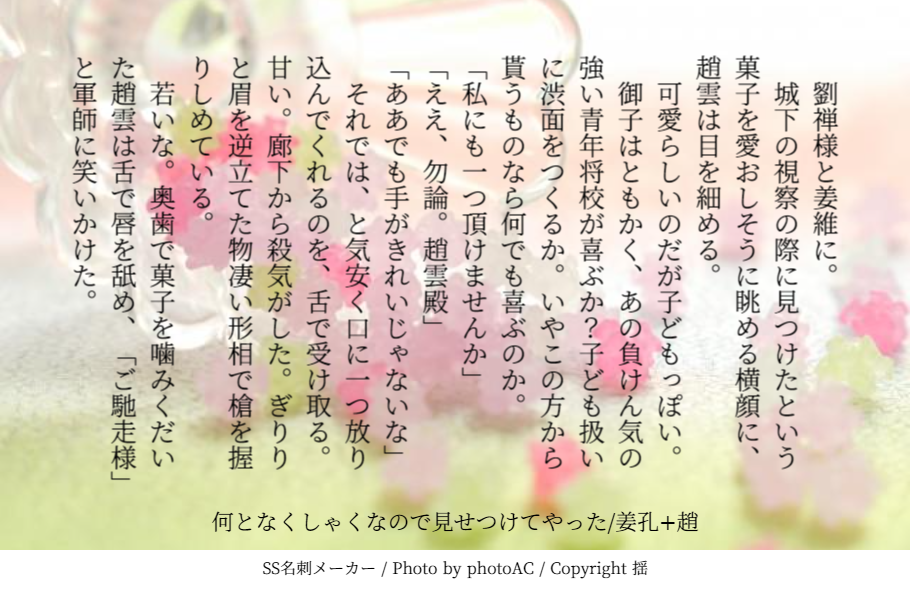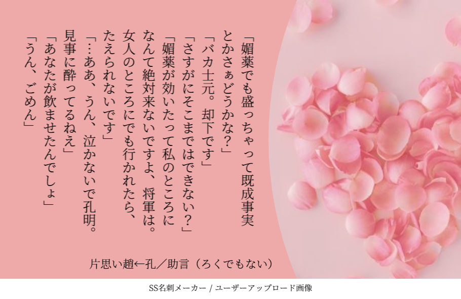 「あなたをおもう気持ちに季節は、ありません。けれど、春情とは、よく言ったものです。‥‥あなたが、欲しい。子龍殿」