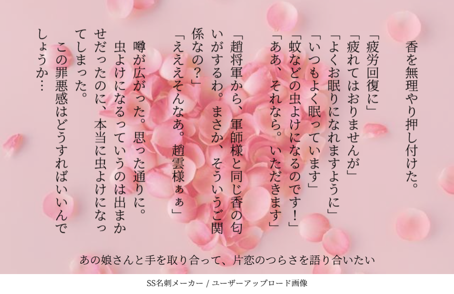 「子龍。あなたがいなくなったら私はもう泣くことすらできないという気がします」